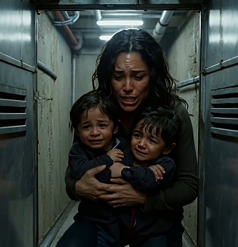 The twins clung to her—small hands gripping her sleeves, their terrified sobs muffled against her chest. The space was too tight, the air too thin, and every thunderclap felt like the walls were closing in.